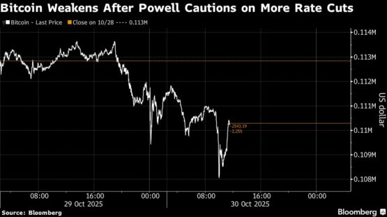 The largest cryptocurrency fell as much as 3.1% to below $108 000 before trimming losses on Thursday. The retreat followed the Federal Reserve’s widely expected decision to lower its benchmark rate by a quarter percentage point to 3.75%-4% on Wednesday — its second straight reduction — while Chair Jerome Powell cautioned investors against assuming further cuts would follow.