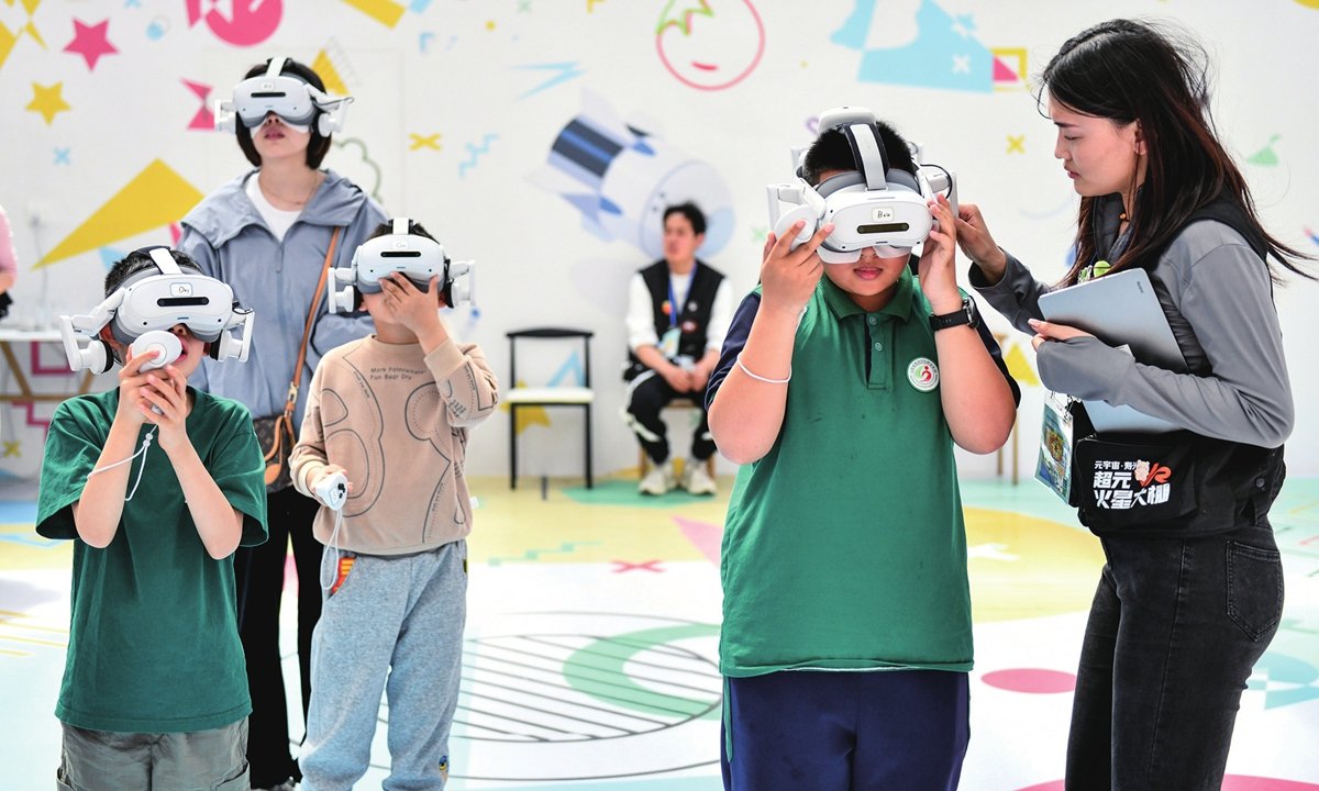 Visitors try on VR headsets at the VR Mars Pavilion, during the 26th China (Shouguang) International Vegetable Sci-Tech Fair in Shouguang, East China’s Shandong Province, on April 20, 2025. Photos on this page: VCG