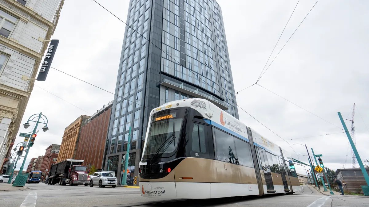 The Hop streetcar arrives at The Couture on Milwaukee’s lakefront