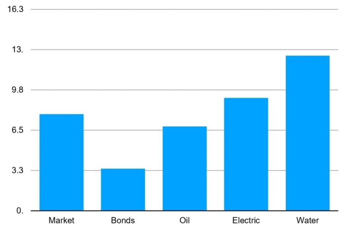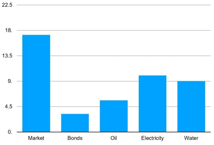 - Electricity and water stock performance has exceeded that of oil stocks despite supposedly similar risk levels.